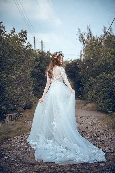 長拖尾〔禮服〕會讓女孩的身影在婚紗照中更有氣勢,