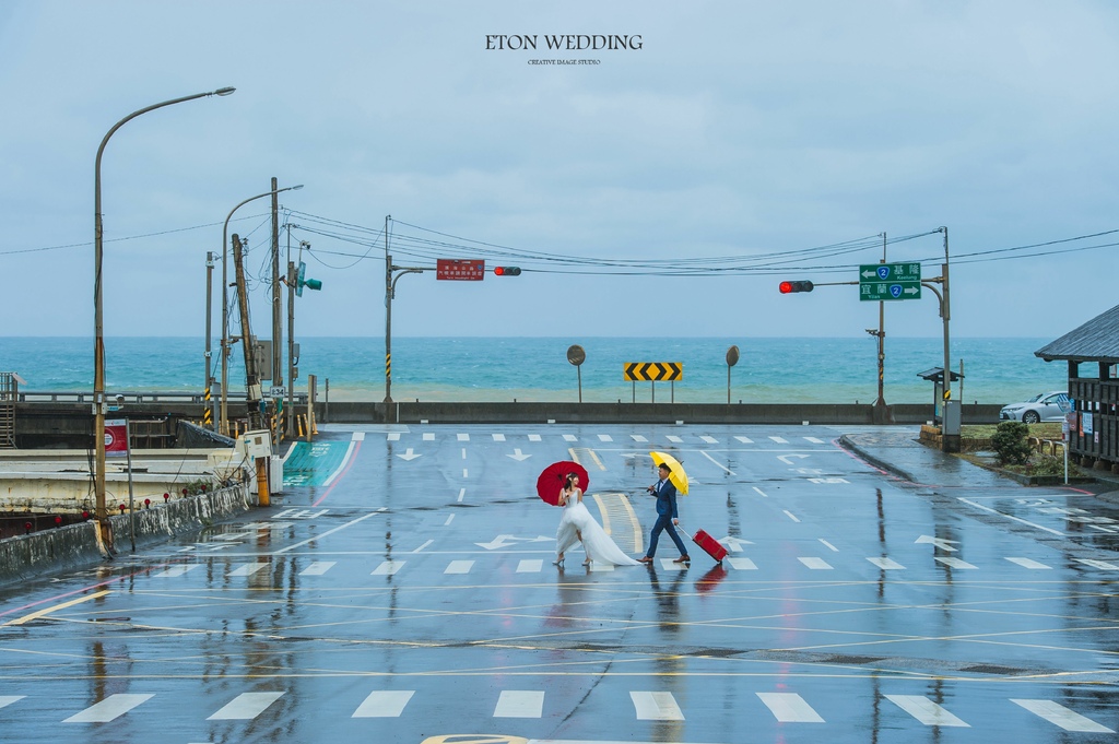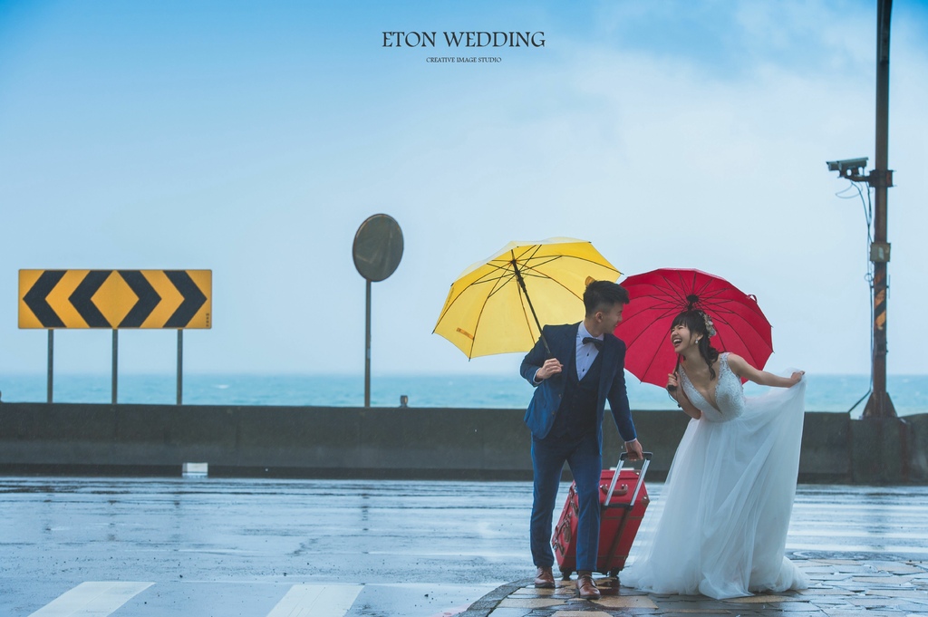 如果想要突顯出人物的互動,建議可以準備不同强烈色系的雨傘及行李箱等,讓婚紗照畫面更加豐富!只要選對婚紗景點,選對攝影師,絕對能拍出你想要的婚紗風格!
