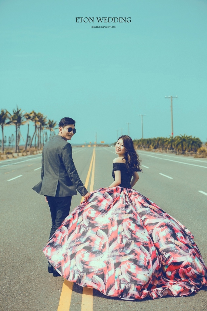 你是不是也曾想過能最愛的人手牽手一起邊走邊拍婚紗呢?在台灣也有這樣的婚紗景點,能完成你們的願望!當然像這樣的場景,一定要搭配一件氣勢特別款式的婚紗。建議新娘如果喜愛印花布款式的婚紗禮服的話,可以選擇這一件!看式兩件式的設計剪裁婚紗,就是這一件禮服厲害的地方!下半身的花布設計更是展現女孩們氣勢的關鍵!喜歡這一件禮服的你,試穿禮服時不妨可以試看看唷!