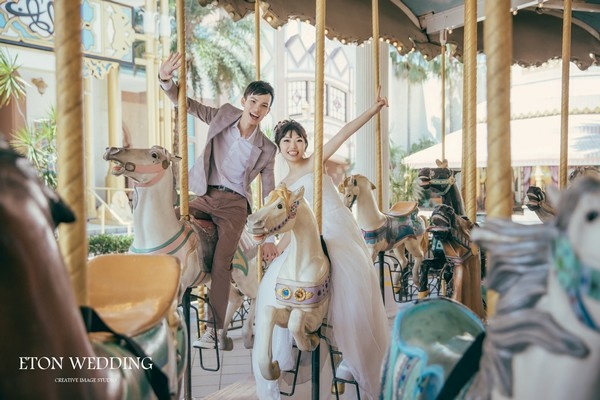 童年回憶的旋轉木馬,拍婚紗照當然不可錯過!在游樂園拍婚紗還多了一份活潑俏皮的氛圍呢!你也喜歡這種氛圍的婚紗照嗎?那千萬不要錯過囖~~